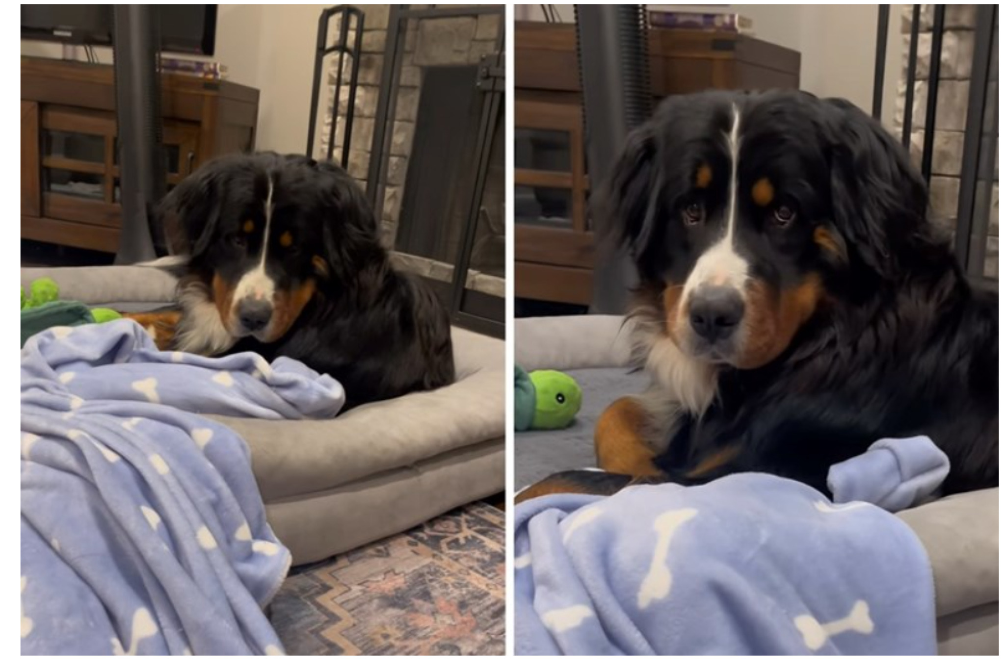 Едно видео кое неодамна насмеа илјадници луѓе покажува колку милениците знаат да се врзат за своите омилени предмети – особено кога некој ќе се обиде да им ги земе. Во центарот на вниманието е берннандинецот Велер, кој јасно стави до знаење дека ќебенцето го смета за „свое“. Снимката брзо привлече внимание поради неговата решителна и малку драматична реакција.На видеото се гледа како Велер без двоумење ја грабнува синото ќебенце, штотуку извадено од сушара, и ѝ го одзема на сопственичката која се обидува да се покрие со него. Иако таа постојано го повикува по име, тој не се откажува сè додека целосно не си ја врати ќебенцето и не го однесе право во својот кревет.Кога сопственичката повторно се обидува да посегне, Велер легнува врз него со целата своја тежина. Радосно мавта со опашката, но по изразот на неговото лице јасно се гледа дека споделување – нема.Гледачите особено ги насмеа моментот кога таа го прашува дали ќебенцето е негово, а тој само ја погледнува – како одговорот воопшто да не е тема на разговор. Во коментарите многумина го истакнаа неговиот „осудувачки“ поглед. Видеото собра повеќе од 100.000 лајкови и над два милиони прегледи, со бројни одушевени реакции.